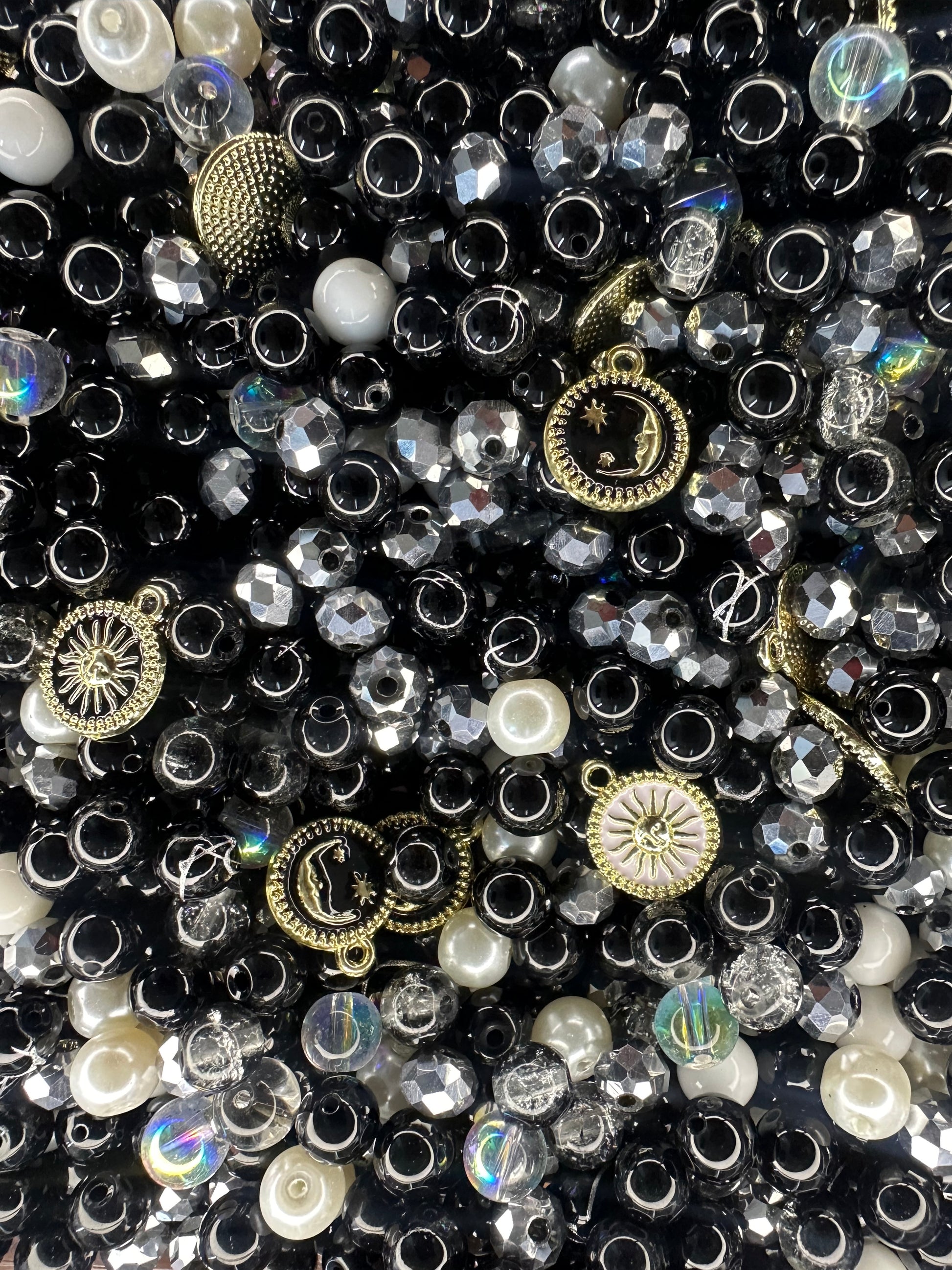 Une collection de perles en verre de 8mm et des perles naturelles (agates et onyx)